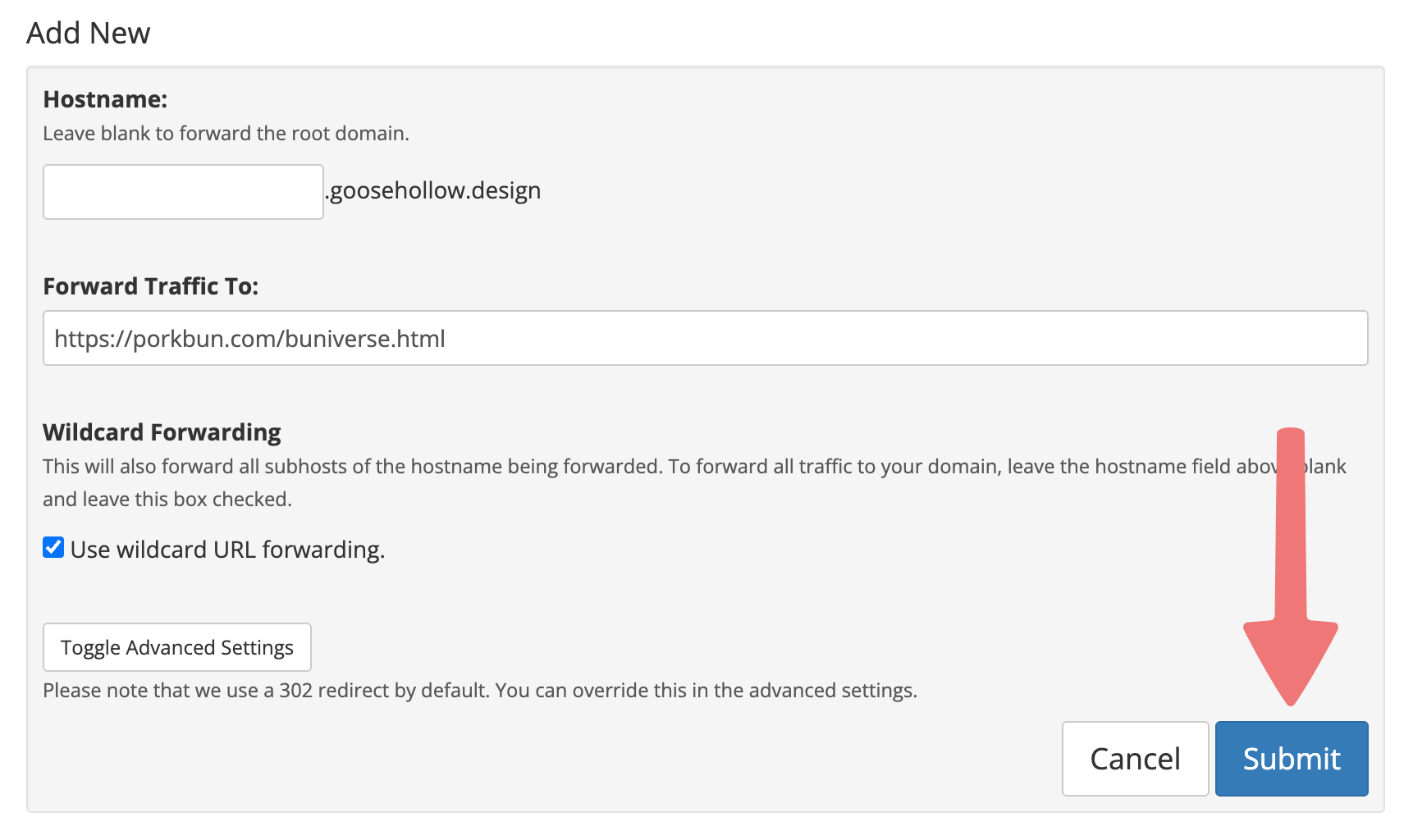 Once you've set things up as needed, click the "Submit" button to save your URL forwarding settings.